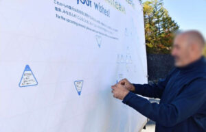 シールは横3・1メートル、縦1・8メートルのタペストリーに貼っていき、来訪者の望むことが一目で確認できるようにしている。