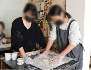 認定NPO法人「富士の緑とフードサポート」(富士吉田市新町2丁目、米林道徳理事長)は、同市下吉田2丁目のレンタルスペース「ミズホ*はろ」で、親子でほうとう作りを楽しむイベントを開いた=写真。
