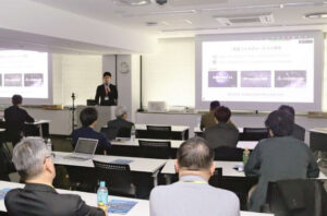 人工衛星の活用、火山灰対策フィルター、3Dシミュレーター、共有地図などの開発に取り組む4社も発表。それぞれの取り組みを伴走支援する県富士山科学研究所の研究員らも補足説明した。